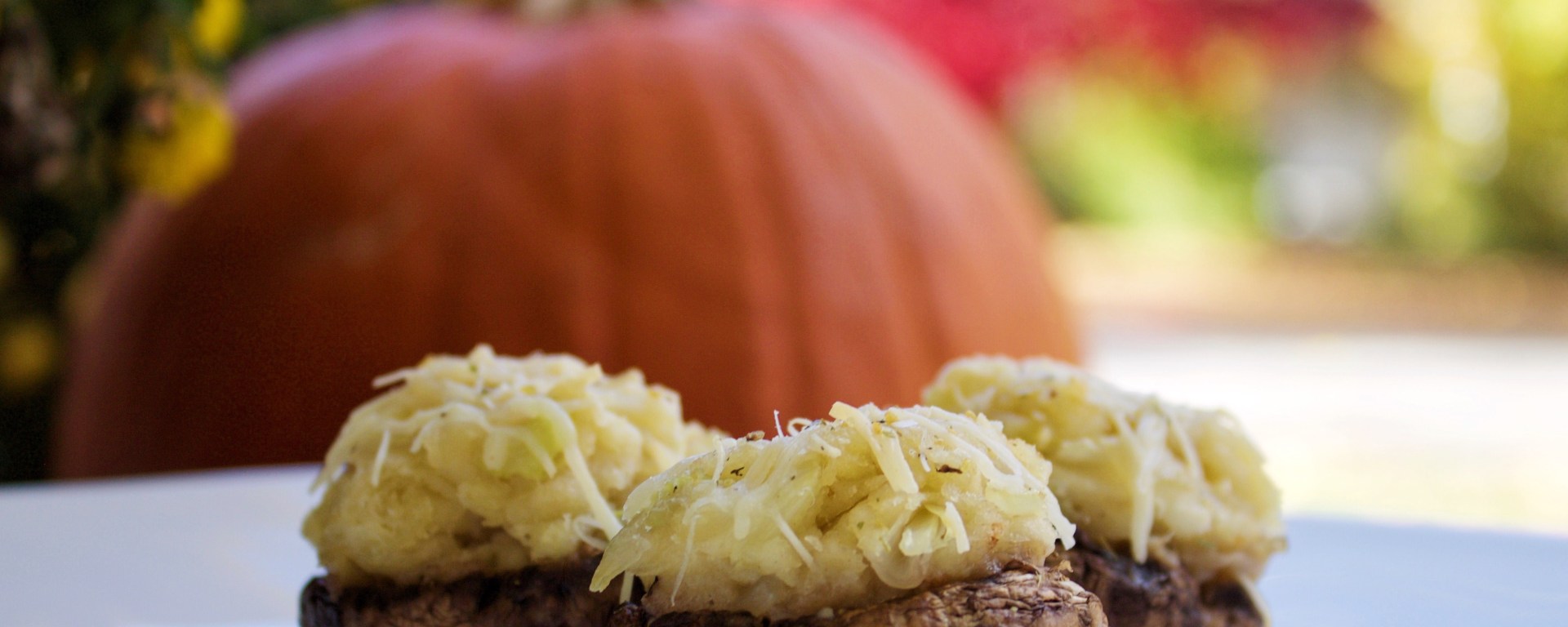 My grandma makes the most delicious stuffing. There’s never any left by the end of dinner, but when I set out to create a leftover-Thanksgiving-dinner meal, I got the idea to use my grandma’s stuffing as the base for stuffed mushrooms. Although Thanksgiving hasn’t happened yet, it’s almost inevitable that there will be some food leftover. If you’re looking for something to do with all of that extra stuffing, give these mushrooms a try. If there’s no extra stuffing, don’t worry, you can make your own with this recipe. And if you’re really looking to spice things up, make these on Thanksgiving rather than after it.
