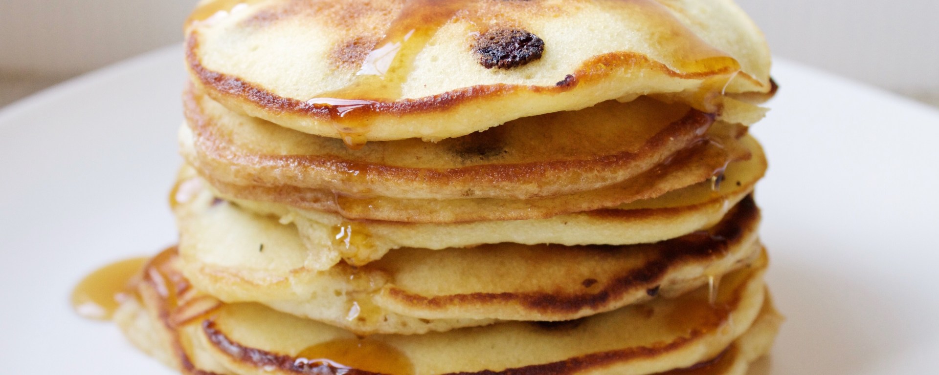 Anyway, I decided to put together my own recipe for chocolate chip pancakes, since everyone knows that the best breakfast joints—aka diners—are packed on weekend mornings (and let’s be honest, weekend mornings are the only time I can actually make a breakfast like this). I use semi-sweet chocolate chips, since the sugar in the batter already sweetens up these pancakes. When they’re fresh off the pan, I top them with a warm syrup/melted butter combo to seal this sweet deal.