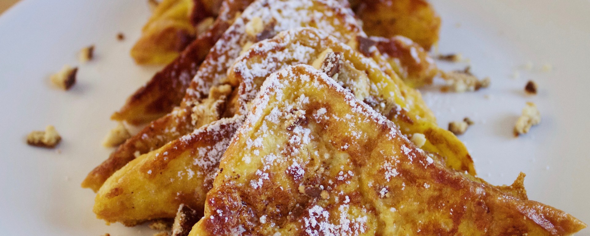 Crush the cookies and set aside. (I put the cookies in a Ziploc and crushed them with a spoon.) In a large bowl, combine eggs and a splash of milk and whisk together. Melt butter on a large pan. Dunk both sides of bread in egg wash and cook on medium-low for about 4 minutes. Then flip and cook two minutes, or until both sides start to brown just a bit. Plate and top with crushed cookies—plus cinnamon, sugar, and powdered sugar if you’d like. Serve immediately.