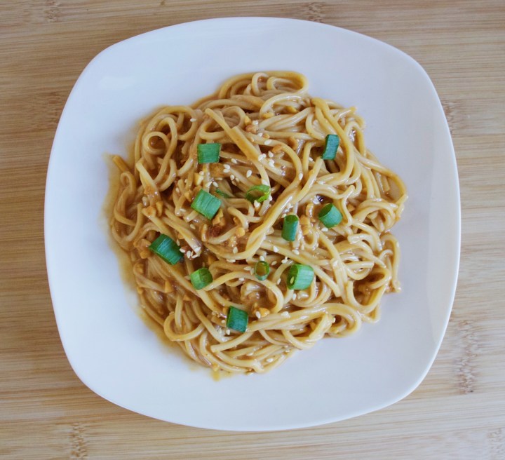 Chinese takeout is one of my guilty pleasures. But some days, I don’t feel like spending the money on takeout, or I only crave one thing that’s not worth placing an entire order. Surprisingly, it’s pretty easy to create your own take on your favorite takeout dish. I put a personal twist on my favorite Chinese food dish, sesame cold noodles. They’re chilled noodles in a spicy, tangy peanut butter sauce, and I could eat a whole order of them by myself. For this recipe, I used Sriracha instead of spicy chile sauce, but feel free to spin the dish however you’d like. I also used Asian-style noodles (egg noodles), but regular pasta would work just fine.