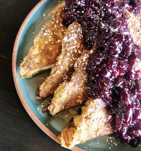 Options such as waffles and French toast are ideal vegetarian dishes (such Jersey Social’s delicious French toast with berry compote, pictured below), but not for vegans—make sure everyone can dine with ease wherever the brunch is held. If the menu says gluten free options “available” but doesn’t list them, call ahead to see exactly what this means.