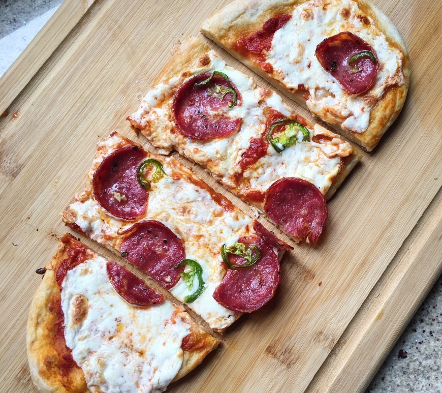 When I was in college, I worked in a pizza place—there is one every 500 feet in New Jersey. However, this wasn’t any kind of pizza place. It was actually an artisan, wood-fired pizza place. A high, high step above Pizza Hut (no offense, Pizza Hut). My boss went to Culinary Institute of America, and it was from watching these pizzas made every day that … Continue reading Spicy Soppressata Pizza