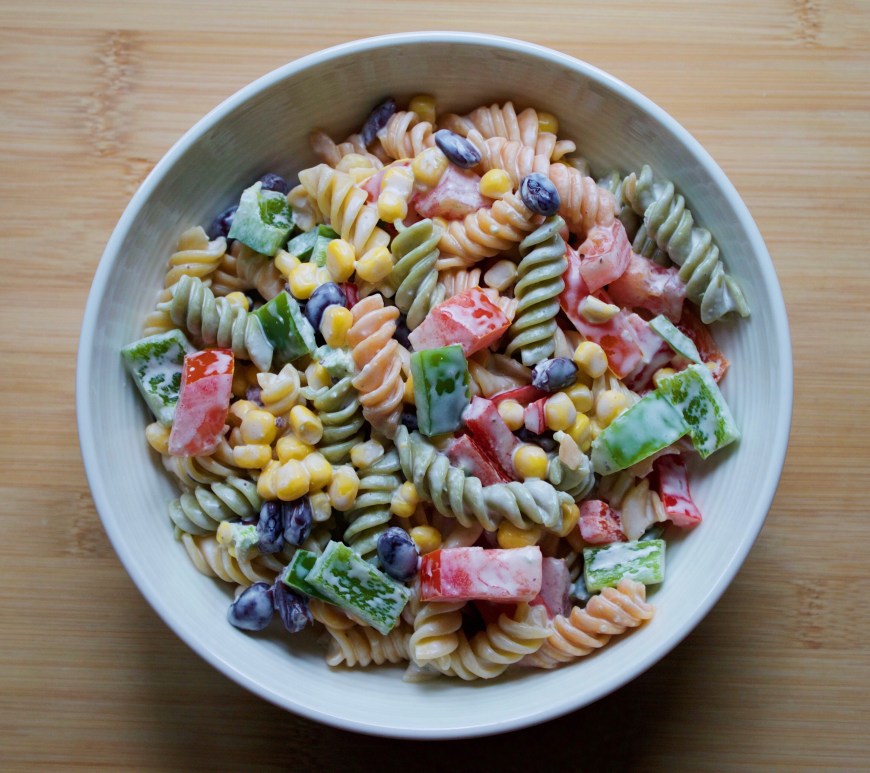 I feel like side salads are a staple at backyard parties. But sometimes cole slaw gets boring, and standard deli macaroni salad always tastes a little sour to me. As someone who loves spice, my first inclination is always to make a spicy salad—one that would add a kick to the backyard menu. This Southwest salad is tossed in a jalapeño dressing, which adds the … Continue reading Spicy Southwest Pasta Salad